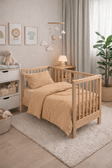 Особливістю цього матеріалу є його живий, трохи зім’ятий вигляд, який не потребує прасування — дитяча постіль виглядає стильно та затишно одразу після прання. Колір зберігає глибину й рівномірність навіть після багаторазового використання.