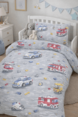 Постільна білизна для хлопчиків ранфорс прінт  "Пожежні машини на сірому"