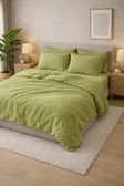 Особливістю цього матеріалу є його живий, трохи зім’ятий вигляд, який не потребує прасування — постіль виглядає стильно та затишно одразу після прання. Колір зберігає глибину й рівномірність навіть після багаторазового використання.