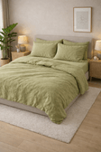 Особливістю цього матеріалу є його живий, трохи зім’ятий вигляд, який не потребує прасування — постіль виглядає стильно та затишно одразу після прання. Колір зберігає глибину й рівномірність навіть після багаторазового використання.