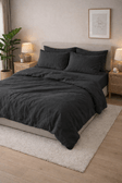 Особливістю цього матеріалу є його живий, трохи зім’ятий вигляд, який не потребує прасування — постіль виглядає стильно та затишно одразу після прання. Колір зберігає глибину й рівномірність навіть після багаторазового використання.