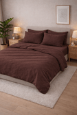 Особливістю цього матеріалу є його живий, трохи зім’ятий вигляд, який не потребує прасування — постіль виглядає стильно та затишно одразу після прання. Колір зберігає глибину й рівномірність навіть після багаторазового використання.