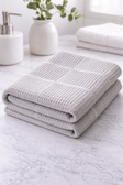 Рушник з тканини піке «мозаїка» — це практичний та стильний текстиль для кухні або ванної кімнати. Особливість цієї тканини полягає у рельєфній структурі з великих квадратів, всередині яких розташоване дрібне вафельне плетіння. Така фактура не лише виглядає оригінально, а й забезпечує хороші функціональні властивості.